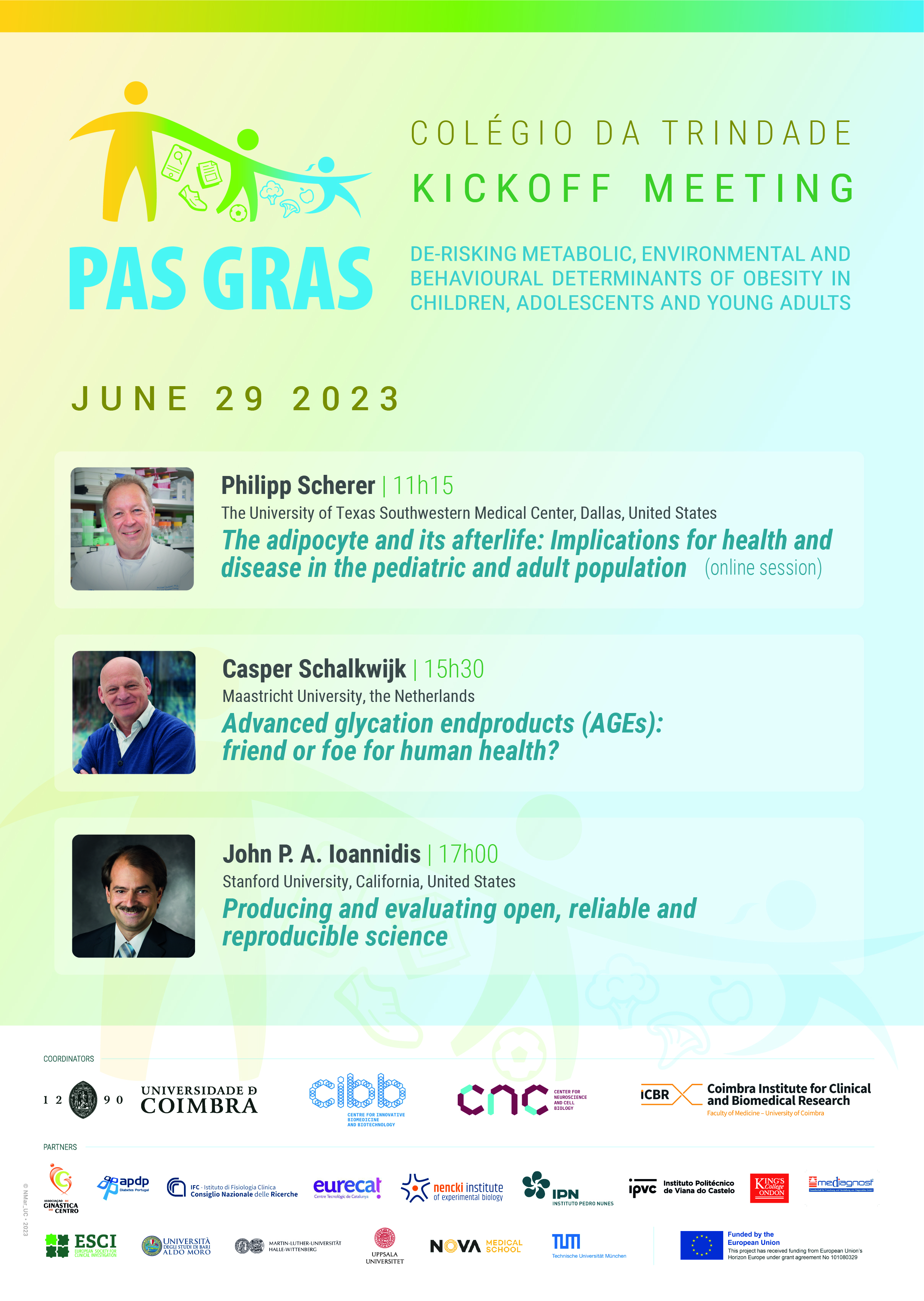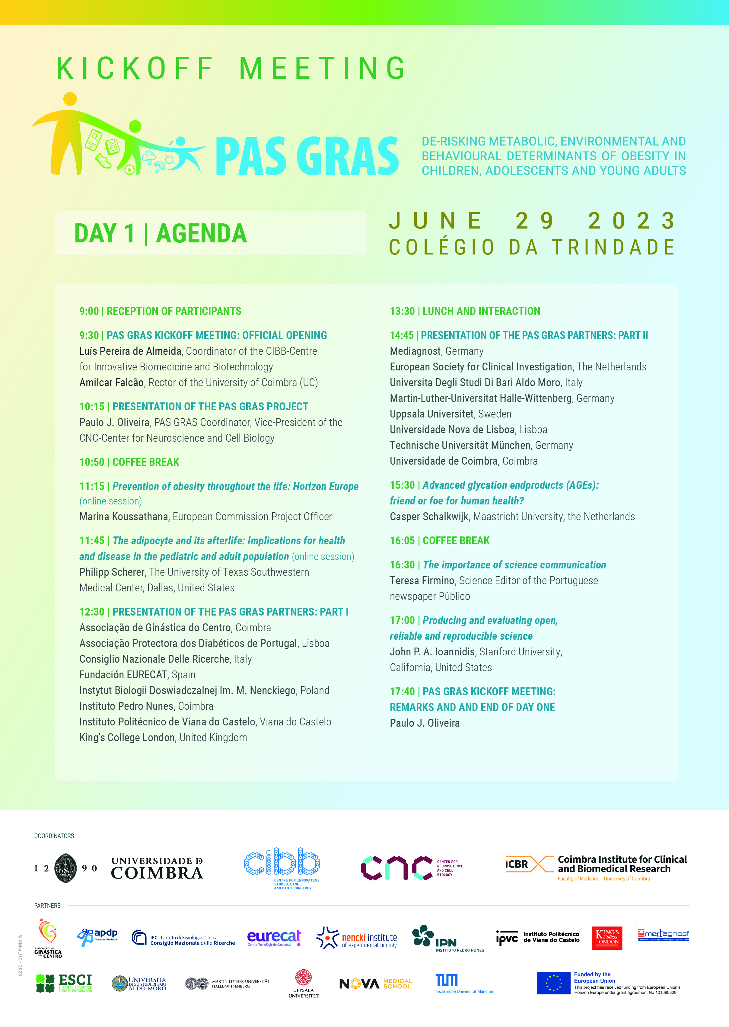 The "PAS GRAS" launch event will also feature presentations by three distinguished scientists, who are part of the project's external advisory board, namely Philipp Scherer, Casper Schalkwijk and John P. A. Ioannidis.