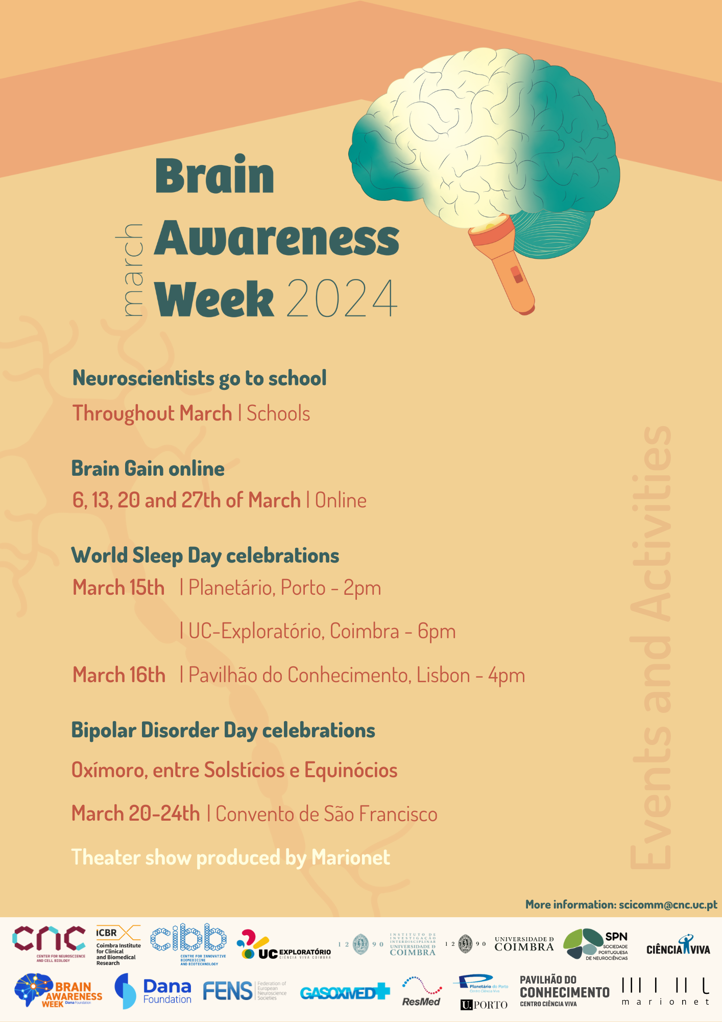 - Activities as part of the Brain Gain: Discovering Neuroscience initiative (March 6, 13, 20 and 27), aimed at higher education students, which aims to inspire higher education students to pursue careers in neuroscience;