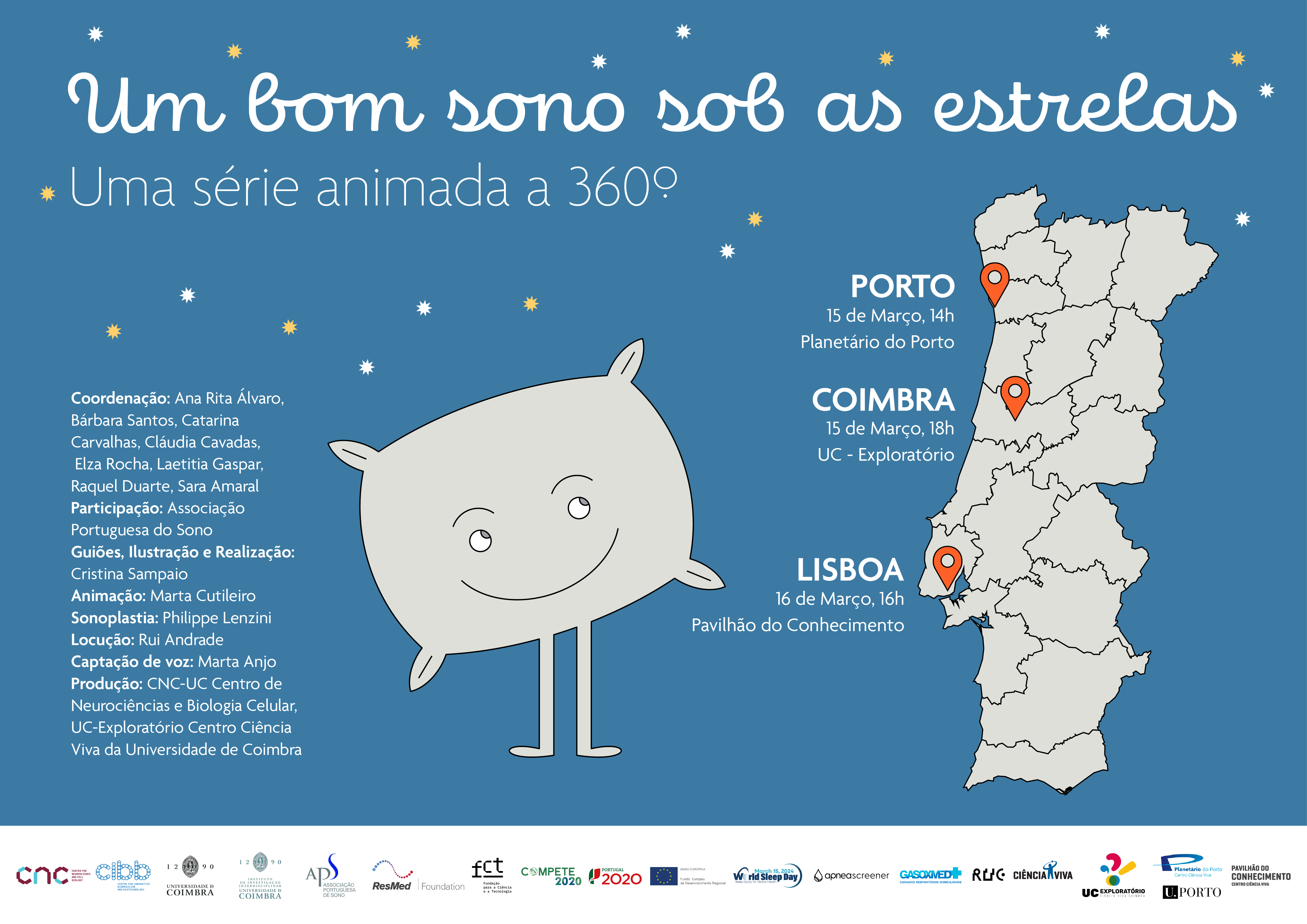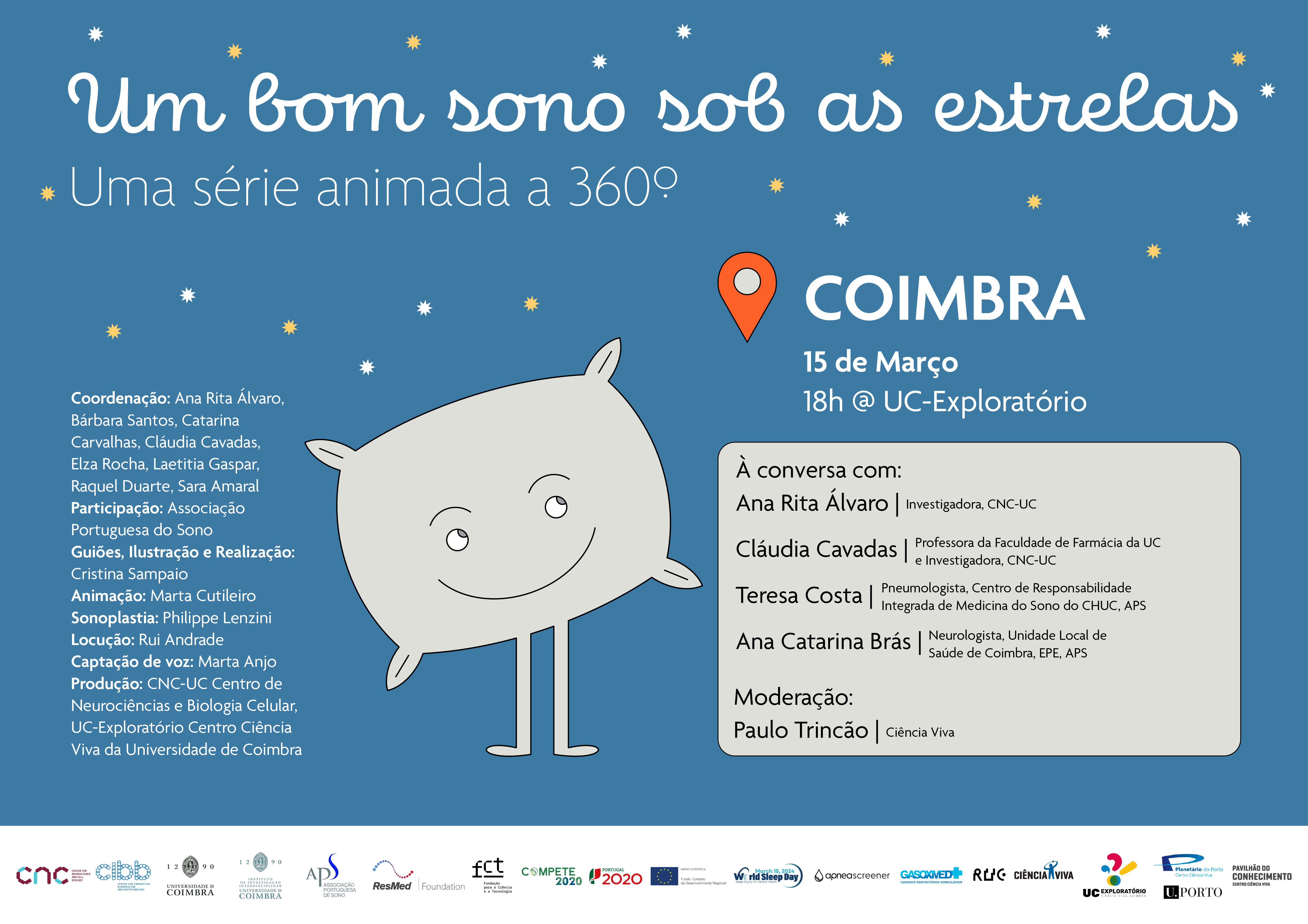 Coordenação: Ana Rita Álvaro, Bárbara Santos, Catarina Carvalhas, Cláudia Cavadas, Elza Rocha, Laetitia Gaspar, Raquel Duarte, Sara Amaral; Participação: Associação Portuguesa do Sono; Guiões, ilustração e realização: Cristina Sampaio; Animação: Marta Cutileiro; Sonoplastia: Philipe Lenzini; Locução: Rui Andrade; Captação de voz: Marta Anjo; Produção: CNC-UC e UC Exploratório