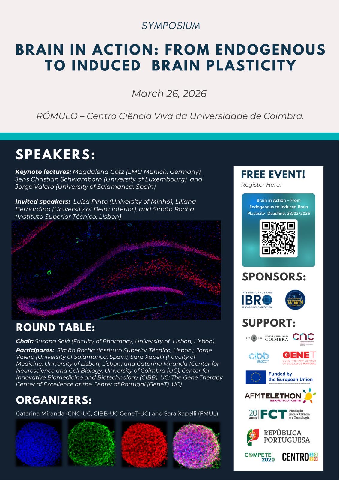 We are pleased to invite you to the symposium Brain in Action – From Endogenous to Induced Brain Plasticity, which will take place at RÓMULO – Centro Ciência Viva da Universidade de Coimbra on March 26, 2026.